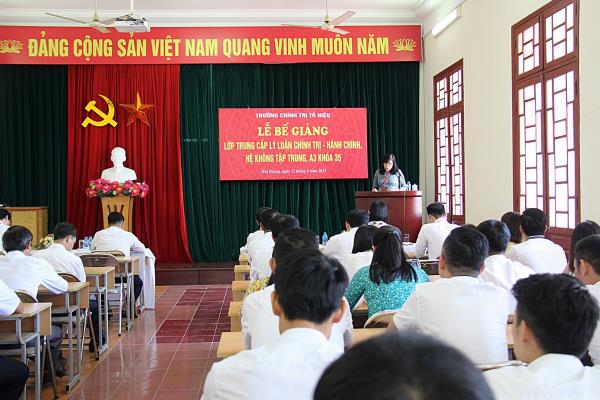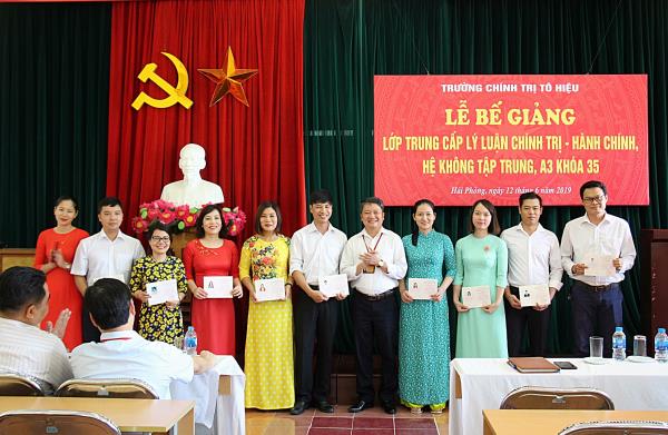 Sáng ngày 12/6/2019, Trường Chính trị Tô Hiệu tổ chức Lễ bế giảng lớp Trung cấp lý luận CT - HC, hệ không tập trung, A3K35. Tới dự có các đồng chí: Nguyễn Văn Kính - Phó Bí thư Đảng ủy, Phó Hiệu trưởng Trường Chính trị Tô Hiệu; đại diện phòng Chính sách cán bộ, Ban tổ chức Thành ủy, lãnh các khoa, phòng nhà trường cùng toàn thể học viên của lớp.