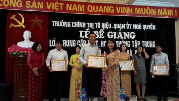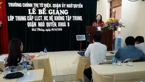Lớp Trung cấp lý luận chính trị - hành chính, hệ không tập trung, quận Ngô Quyền, khóa 8 khai giảng ngày 10/8/2017, kết thúc chương trình học tập tháng 9/2018. Lớp học được tổ chức theo chương trình đào tạo và Quy chế quản lý đào tạo hiện hành của Học viện Chính trị quốc gia Hồ Chí Minh gồm 07 học phần tương ứng 10 môn học và nghiên cứu thực tế cuối khóa. Sau 01 năm học tập, lớp học đã hoàn thành chương trình đào tạo, đảm bảo đúng mục tiêu và kế hoạch, 100% học viên đủ điều kiện tốt nghiệp được cấp bằng Trung cấp lý luận chính trị - hành chính. Kết quả học tập toàn khóa: Xếp loại giỏi: 45 học viên (50 %); Xếp loại khá: 45 học viên (50 %). 09 học viên có kết quả học tập và rèn luyện tốt được tập thể lớp bình xét vinh dự được Hiệu trưởng Trường Chính trị Tô Hiệu khen thưởng.