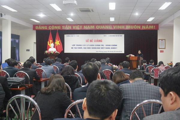 Lớp Trung cấp lý luận chính trị - hành chính, hệ tại chức, Đại học Hàng hải Việt Nam, khóa 1 khai giảng ngày 07/ 9/2016. Lớp gồm 80 học viên là cán bộ, viên chức, giảng viên giữ chức danh lãnh đạo quản lý và dự nguồn các chức danh lãnh đạo, quản lý các đơn vị trực thuộc Đại học Hàng Hải Việt Nam và một số học viên đến từ các đơn vị khác trong thành phố. Học viên của lớp có cơ cấu trình độ chuyên môn cao. Sau hơn 12 tháng học tập theo Chương trình Trung cấp lý luận chính trị - hành chính mới do Học viện Chính trị Quốc gia Hồ Chí Minh ban hành, các học viên đã được trang bị hệ thống kiến thức cơ bản về chủ nghĩa Mác - Lênin, tư tưởng Hồ Chí Minh; quan điểm, đường lối, chính sách, pháp luật của Đảng và Nhà nước cùng các kỹ năng, nghiệp vụ công tác lãnh đạo, quản lý và quản lý hành chính nhà nước. Qua khóa học, các đồng chí học viên được rèn luyện, nâng cao bản lĩnh chính trị, phẩm chất đạo đức và năng lực tổ chức thực tiễn. Với ý thức trách nhiệm cao, thi đua trong công tác và học tập, từng đồng chí học viên đã hoàn thành tốt nhiệm vụ học tập của mình. Kết thúc khóa học có 80 học viên (đạt 100%) được công nhận tốt nghiệp và được cấp Bằng Trung cấp lý luận chính trị - hành chính. Xếp loại học tập: 32 học viên (40%) đạt loại giỏi; 48 học viên (60%) xếp loại khá. 08 đồng chí học viên của Lớp có thành xuất sắc trong học tập, được tập thể bình xét được Hiệu trưởng khen thưởng và trao tặng giấy khen.