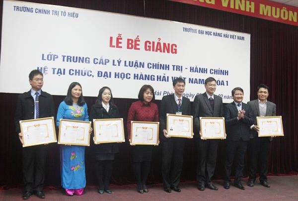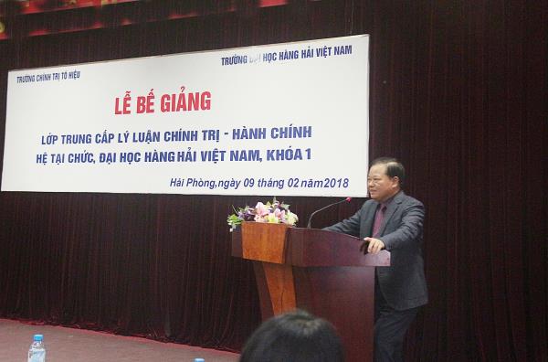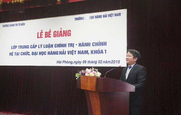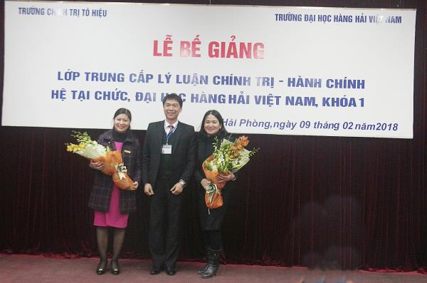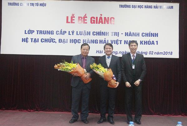 Sáng 09/02/2018, tại Trường Đại học hàng hải Việt Nam, Trường Chính trị Tô Hiệu đã phối hợp với Đảng ủy Trường Đại học Hàng hải Việt Nam tổ chức Lễ bế giảng Lớp Trung cấp lý luận chính trị - hành chính, hệ tại chức, Đại học Hàng hải Việt Nam, khóa 1. Tham dự buổi Lễ có các đồng chí: Nguyễn Văn Kính - Phó Bí thư Đảng ủy, Phó Hiệu Trưởng Trường Chính trị Tô Hiệu; Nguyễn Văn Hiểu - Phó Hiệu Trưởng Trường Chính trị Tô Hiệu; Lương Công Nhớ - Bí thư Đảng ủy, Hiệu trưởng Trường Đại học Hàng hải Việt Nam; Hoàng Văn Thủy - Phó Bí thư Đảng ủy Trường Đại học Hàng Hải Việt Nam, Trưởng ban chỉ đạo lớp học; đại diện lãnh đạo Công đoàn Trường Đại học Hàng Hải Việt Nam và các đơn vị khoa, phòng hai nhà trường cùng toàn thể học viên của Lớp.