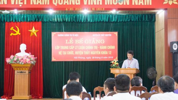 Chiều ngày 30/8/2018, tại Hội trường Trung tâm Bồi dưỡng chính trị huyện Thủy Nguyên, Trường Chính trị Tô Hiệu đã phối hợp với Huyện uỷ Thủy Nguyên tổ chức Lễ bế giảng lớp Trung cấp lý luận chính trị - hành chính, hệ tại chức, huyện Thủy Nguyên, khóa 12.