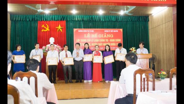 Lớp Trung cấp lý luận chính trị - hành chính, hệ tại chức, huyện Thủy Nguyên, khóa 12 khai giảng tháng 9/2016, gồm 86 học viên. Sau 18 tháng học tập với tinh thần học tập nghiêm túc, thực hiện tốt kỷ luật, quy chế của nhà trường, đến nay lớp đã hoàn thành nội dung chương trình đào tạo, đảm bảo đúng tiến độ, kế hoạch học tập. Kết thúc khóa học: 86/86 (100%) học viên của lớp đủ điều kiện tốt nghiệp, được cấp bằng Trung cấp lý luận chính trị - hành chính. Xếp loại học tập toàn khóa: 40 học viên (47%) xếp loại giỏi, 46 học viên (53%) xếp loại khá. 09 học viên tiêu biểu, có thành tích học tập và rèn luyện tốt, được tập thể lớp bình xét vinh dự được Hiệu trưởng Trường khen thưởng.