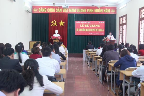 Sáng ngày 05/4/2016, Trường Chính trị Tô Hiệu phối hợp với Sở Nội vụ thành phố Hải Phòng tổ chức Lễ bế giảng Lớp Bồi dưỡng ngạch chuyên viên khóa 47. Tới dự, có đồng chí Nguyễn Văn Kính - Phó Hiệu trưởng Trường; đồng chí Nguyễn Thị Hải Hà – Phó Hiệu trưởng Trường, Lãnh đạo phòng Công chức, viên chức Sở Nội vụ, đại diện lãnh đạo các khoa, phòng nhà trường cùng toàn thể 83 học viên của Lớp.