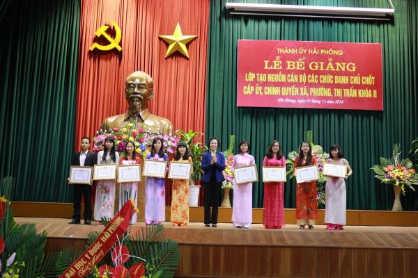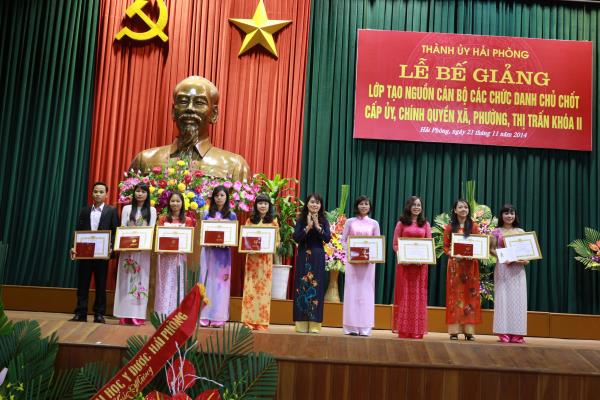 Sáng ngày 21/11/2014, tại Trường Chính trị Tô Hiệu, Thành ủy Hải Phòng tổ chức Lễ bế giảng Lớp Tạo nguồn cán bộ các chức danh chủ chốt cấp ủy, chính quyền xã, phường, thị trấn khóa 2. Tới dự có các đồng chí: Nguyễn Thị Nghĩa - Phó Bí thư Thường trực Thành ủy, Trưởng đoàn đại biểu Quốc hội thành phố Hải Phòng, Trưởng Ban Chỉ đạo Đề án tạo nguồn cán bộ các chức danh chủ chốt cấp ủy, chính quyền xã, phường, thị trấn; Nguyễn Văn Điều, Phó Trưởng ban thường trực phụ trách Ban tổ chức Thành ủy Hải Phòng; đại diện lãnh đạo Thành ủy, UBND Thành phố, các Quận, huyện có học viên theo học; lãnh đạo Trường Chính trị Tô Hiệu; Ban Chỉ đạo Đề án cùng toàn thể 81 học viên của lớp.