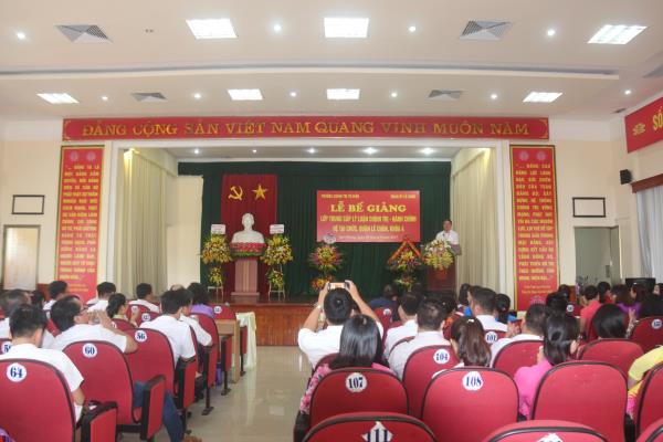 Sáng ngày 01/9/2017, tại Hội trường Quận ủy Lê Chân, Trường Chính trị Tô Hiệu phối hợp với Quận ủy Lê Chân tổ chức Lễ bế giảng lớp Trung cấp lý luận chính trị - hành chính hệ tại chức, Quận Lê Chân, khóa 4. Tới dự buổi Lễ có các đồng chí: Nguyễn Văn Tuấn - Phó Bí thư thường trực, Chủ tịch Hội đồng nhân dân Quận; Nguyễn Văn Kính - Phó Bí thư Đảng ủy, Phó Hiệu trưởng Trường Chính trị Tô Hiệu; Trần Thị Quỳnh Trang - Phó Bí thư Đảng ủy khối Doanh nghiệp; đại diện lãnh đạo phòng Chính sách cán bộ, Ban Tổ chức Thành ủy; các khoa, phòng nhà trường cùng toàn thể 89 học viên của Lớp.