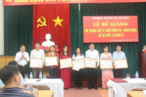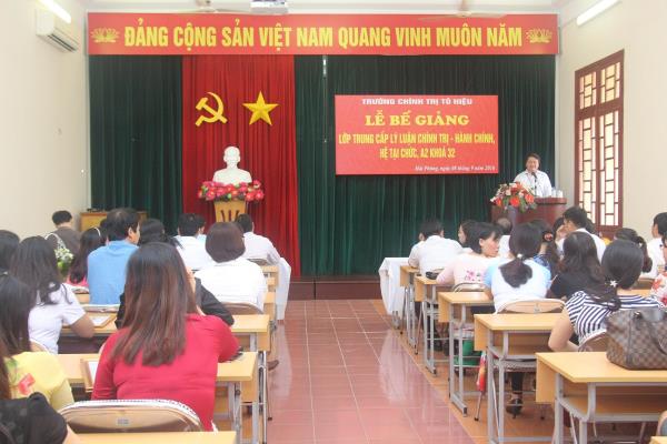 Chiều ngày 08/9, tại phòng học số 3, Trường Chính trị Tô Hiệu đã tổ chức bế giảng lớp Trung cấp lý luận chính trị - hành chính hệ tại chức A2K32. Dự lễ bế giảng có các đ/c Phó Hiệu trưởng Trường: Nguyễn Văn Kính; Nguyễn Thị Hải Hà; Đại diện lãnh đạo Phòng Chính sách cán bộ, Ban Tổ chức Thành ủy; đại diện lãnh đạo các khoa, phòng nhà trường cùng toàn thể học viên của Lớp.