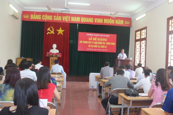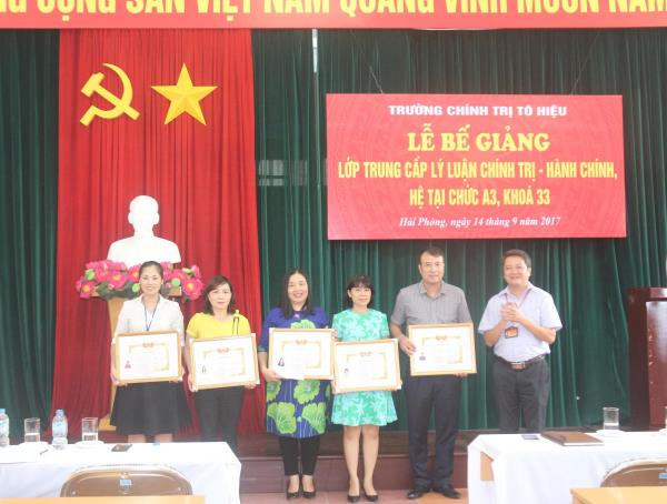 Sáng ngày 14/9/2017, Trường Chính trị Tô Hiệu tổ chức Lễ bế giảng lớp Trung cấp lý luận chính trị - hành chính, hệ tại chức A3, khóa 33. Tới dự buổi Lễ có các đồng chí: Nguyễn Văn Kính - Phó Bí thư Đảng ủy, Phó Hiệu trưởng Trường; Nguyễn Thị Hải Hà - Phó Hiệu trưởng Trường; đại diện lãnh đạo các khoa, phòng nhà trường cùng toàn thể 62 học viên của Lớp.