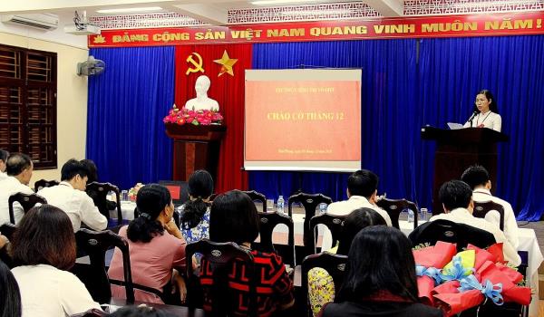 Sau nghi lễ Chào cờ, thay mặt Đảng ủy, Ban Giám hiệu Trường, đồng chí Nguyễn Thị Hải Hà - Phó Hiệu trưởng, Chủ tịch Công đoàn Trường đã đánh giá công tác tháng 11 và triển khai nhiệm vụ công tác tháng 12 của nhà trường. Theo đó, trong tháng 11, trong không khí thi đua lập thành tích chào mừng 36 năm Ngày Nhà giáo Việt Nam, toàn thể cán bộ, viên chức Trường đã hoàn thành nhiệm vụ công tác trên tất cả các mặt, được Lãnh đạo Trường ghi nhận, đánh giá cao. Bên cạnh đó, một số công tác cần tập trung thực hiện tốt hơn, gồm: Sắp xếp, bố trí các phương án giảng viên hợp lý, tránh chồng chéo; các chủ nhiệm lớp cần thực hiện nghiêm túc việc báo cáo sĩ số lớp học về bộ phận trực đào tạo; phát huy vai trò của Ban Thanh tra nhân dân và Tổ thanh tra giáo dục nhà trường trong toàn bộ hoạt động đào tạo, bồi dưỡng và các hoạt động khác của nhà trường nói chung. Định hướng hoạt động trong tháng 12, Nhà trường tiếp tục triển khai và đẩy mạnh các hoạt động giảng dạy; hoàn thành các nhiệm vụ nghiên cứu khoa học, nghiên cứu thực tế đúng tiến độ; tổ chức, hành chính, quản trị; hoạt động của tổ chức đoàn thể, hướng đến tổng kết công tác năm 2018 của các đơn vị và nhà trường; xây dựng kế hoạch, nhiệm vụ công tác năm 2019.