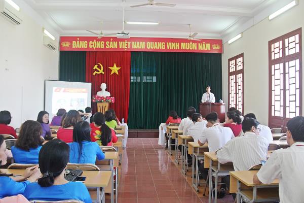 Cuối buổi Lễ, thực hiện Chủ đề năm 2018 của Đảng ủy Trường về “Học tập và làm theo tư tưởng, đạo đức, phong cách Hồ Chí Minh về xây dựng phong cách, tác phong người đứng đầu, của cán bộ, đảng viên” gắn với Nghị quyết Hội nghị Trung ương 4 (Khóa XII) trong toàn Đảng bộ và Kế hoạch sinh hoạt chuyên đề của Đảng ủy Trường, đồng chí Nguyễn Tiến Dũng - Thạc sĩ, Giảng viên khoa Lý luận Mác - Lênin, tư tưởng Hồ Chí Minh đã báo cáo chuyên đề với nội dung: “Học tập phong cách nêu gương của Chủ tịch Hồ Chí Minh” gắn với thực hiện nhiệm vụ chính trị của cán bộ, viên chức, người lao động Trường./.