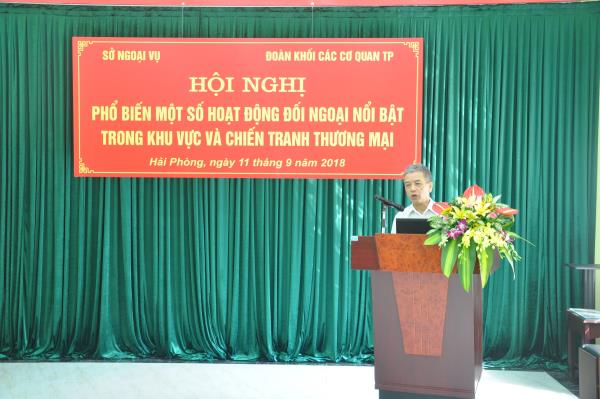 Đây là Hội nghị do Sở Ngoại vụ phối hợp với Đoàn Khối Các cơ quan thành phố tổ chức. Thành phần tham dự gồm các đồng chí lãnh đạo Đoàn Khối Các cơ quan thành phố; đại diện lãnh đạo Sở Ngoại vụ cùng đoàn viên thanh niên các đơn vị trực thuộc Đoàn Khối Các cơ quan thành phố, các Quận đoàn và Trường đại học trên địa bàn thành phố. Đồng chí Bùi Thế Giang - Nguyên Vụ trưởng Vụ Tây Âu - Bắc Mỹ, Ban Đối ngoại Trung ương trực tiếp báo cáo chuyên đề.
