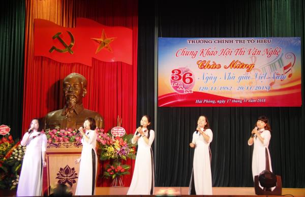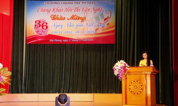 Thực hiện Kế hoạch số 62/KH-TTH ngày 04/10/2018 của Hiệu trưởng Trường Chính trị Tô Hiệu về việc triển khai các hoạt động văn nghệ, thể dục thể thao, chương trình “Ngày Thứ 7 tình nguyện”, phong trào “Xanh - Sạch - Đẹp” kỷ niệm 36 năm Ngày Nhà giáo Việt Nam. Chiều ngày 17/11/2018, tại Hội trường lớn, Trường Chính trị Tô Hiệu tổ chức Chung khảo Hội thi văn nghệ Chào mừng Ngày Nhà giáo Việt Nam (20/11/1982 - 20/11/2018). Tới dự có đồng chí: Trần Thị Bích Hằng - Bí thư Đảng ủy, Hiệu trưởng; các đồng chí Phó Hiệu trưởng, Chủ tịch Công đoàn Trường; đại diện lãnh đạo Trung tâm Bồi dưỡng chính trị các quận, huyện; thành viên Ban Tổ chức các chương trình giao lưu văn nghệ, thể thao Chào mừng Ngày Nhà giáo Việt Nam Trường cùng toàn thể cán bộ, viên chức, người lao động nhà trường; các thí sinh tham gia Hội thi và học viên các lớp; Đài Phát thanh và Truyền hình Hải Phòng tới dự và đưa tin.