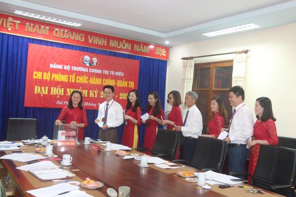 Thực hiện Kế hoạch số 03-KH/ĐU ngày 12 tháng 6 năm 2017 của Đảng ủy Trường Chính trị Tô Hiệu về tổ chức đại hội chi bộ các khoa, phòng, nhiệm kỳ 2017 - 2020, chiều ngày 28/9, chi bộ phòng Tổ chức - Hành chính - Quản trị tổ chức Đại hội Chi bộ, nhiệm kỳ 2017 - 2020. Về dự và chỉ đạo Đại hội có đồng chí Trần Thị Bích Hằng - Bí thư Đảng ủy, Hiệu trưởng Trường.