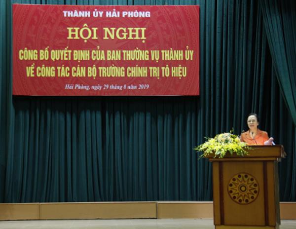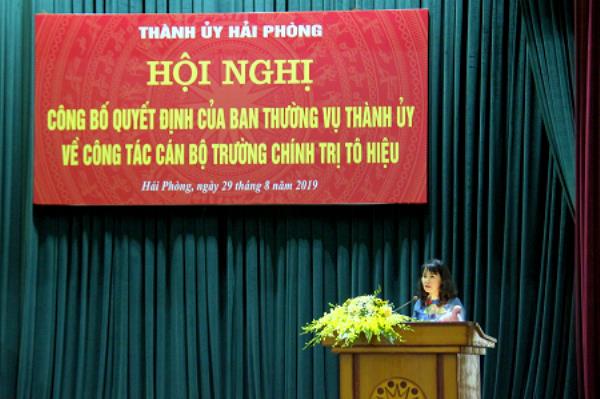 Theo quyết định của Ban Thường vụ Thành ủy Hải Phòng, đồng chí Trần Thị Bích Hằng, Bí thư Đảng ủy, Hiệu trưởng Trường Chính trị Tô Hiệu sẽ nghỉ hưu để hưởng chế độ bảo hiểm xã hội kể từ ngày 01/9/2019. Đồng thời, cũng theo quyết định của Ban thường vụ Thành ủy Hải Phòng, đồng chí Nguyễn Văn Hiểu, Phó hiệu trưởng Trường Chính trị Tô Hiệu được bổ nhiệm Hiệu trưởng Trường.