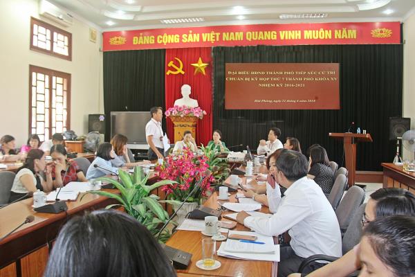 Thực hiện Kế hoạch số 07/KH-HĐND ngày 07/6/2018 của HĐND thành phố Hải Phòng về tiếp xúc cử tri kỳ họp thứ 7 Hội đồng nhân dân thành phố khóa XV, chiều ngày 21/6/2018, tại phòng Hội thảo, đại biểu HĐND thành phố tiến hành tiếp xúc cử tri Trường Chính trị Tô Hiệu.