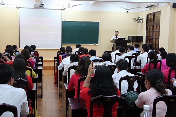Đồng chí Nguyễn Văn Kính - Phó Bí thư Đảng ủy, Phó Hiệu trưởng Báo cáo về kết quả thực hiện các nhiệm vụ phát triển kinh tế, văn hóa, xã hội của thành phố Hải Phòng với Đoàn NCTT