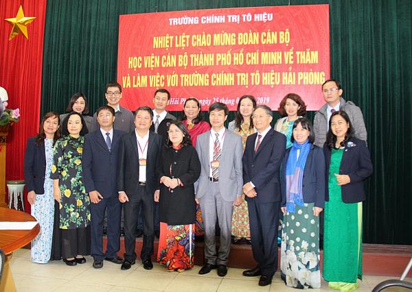 Sáng ngày 25/02/2019, tại Phòng Hội thảo,Trường Chính trị Tô Hiệu đã đón tiếp và trao đổi công tác với Đoàn cán bộ chủ chốt của Học viện Cán bộ Thành phố Hồ Chí Minh tới thăm và làm việc với Nhà trường. Buổi làm việc nhằm mục đích nghiên cứu thực thế, trao đổi kinh nghiệm về các nội dung: công tác đào tạo, bồi dưỡng cán bộ, công chức, viên chức; công tác nghiên cứu khoa học và hợp tác quốc tế của hai nhà trường. Qua đó tăng cường sự hiểu biết, tình đoàn kết và khả năng hợp tác giữa hai nhà trường trong thời gian tới.