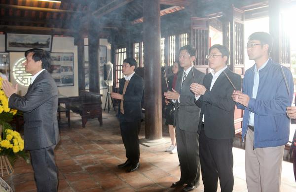 Mở đầu chương trình làm việc, Đoàn công tác Trường Chính trị Thái Bình đã đến thăm Nhà tưởng niệm Lãnh tụ Nguyễn Đức Cảnh (xã An Đồng, huyện An Dương thành phố Hải Phòng), dâng hương tưởng niệm lãnh tụ Nguyễn Đức Cảnh – người con ưu tú, trung kiên của của quê hương Thái Bình. Tại đây, Đoàn đã bày tỏ lòng tri ân đối với đồng chí Nguyễn Đức Cảnh - người học trò ưu tú của Chủ tịch Hồ Chí Minh, một trong những lãnh tụ xuất sắc của Đảng và tổ chức Công đoàn Việt Nam, Bí thư thành ủy đầu tiên của thành ủy Hải Phòng. Sau khi dâng hương, Đoàn đã được nghe Ban quản lý Nhà tưởng niệm giới thiệu về thân thế, sự nghiệp, những đóng góp to lớn của đồng chí Nguyễn Đức Cảnh đối với cách mạng Việt Nam và quá trình tìm kiếm hài cốt, xây dựng Nhà tưởng niệm đồng chí tại xã An Đồng, huyện An Dương, thành phố Hải Phòng hiện nay.