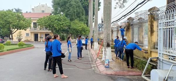 Đoàn Thanh niên đang lao động chỉnh trang, làm đẹp toàn bộ khuôn viên tường rào xung quanh Nhà trường.