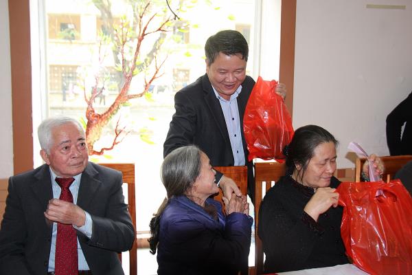 Đ/c Nguyễn Văn Kính - Phó Bí thư Đảng ủy, Phó Hiệu Trưởng Trường tặng quà cho cán bộ hưu trí Trường nhân dịp tết Kỷ Hợi