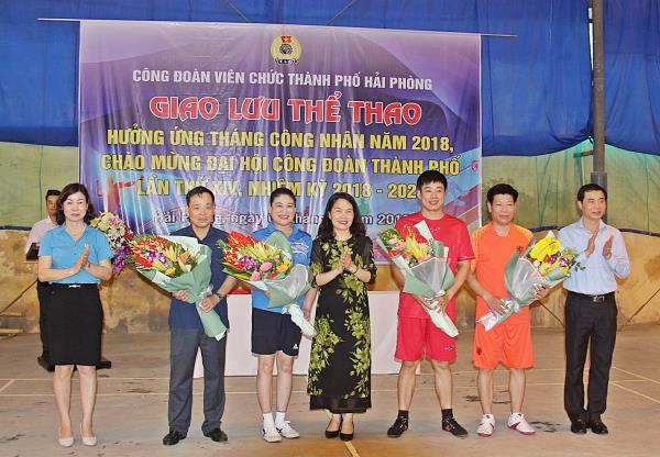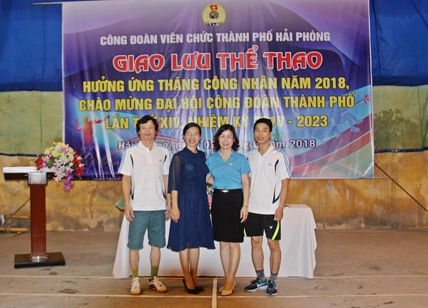 "Giao lưu thể thao Hưởng ứng Tháng Công nhân năm 2018, chào mừng Đại hội Công đoàn Thành phố lần thứ XIV, nhiệm kỳ 2018 - 2023" do Công đoàn viên chức Thành phố Hải Phòng phối hợp với Công đoàn Trường Chính trị Tô Hiệu tổ chức. Ban Biên tập Cổng Thông tin Điện tử Trường trân trọng giới thiệu tới Quý độc giả một số hình ảnh tiêu biểu của Buổi giao lưu thể thao: