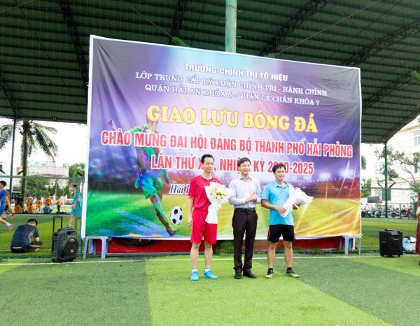 Hướng tới chào mừng Đại hội Đảng bộ thành phố Hải Phòng lần thứ XVI, nhiệm kỳ 2020 - 2025, chiều ngày 26/9/2020 tại Trung tâm văn hóa, thể thao phường Đằng Lâm, quận Hải An đã diễn ra trận giao lưu bóng đá giữa hai lớp Trung cấp lý luận chính trị - hành chính quận Hải An, khóa 5 và quận Lê Chân, khóa 7. Đến dự và động viên hai lớp, về phía Trường Chính trị Tô Hiệu có đồng chí Nguyễn Văn Hiểu - Bí thư Đảng ủy, Hiệu trưởng Trường, đồng chí Đặng Thị Dư - Trưởng phòng Quản lý đào tạo và nghiên cứu khoa học. Về phía Quận ủy Lê Chân và Hải An có đồng chí Nguyễn Thị Minh Ngọc - UVBTV, Trưởng ban Tuyên giáo, Giám đốc Trung tâm chính trị quận Lê Chân; đồng chí Nguyễn Văn Đảo - UVBTV, Trưởng ban Tuyên giáo, Giám đốc Trung tâm chính trị quận Hải An; đồng chí Trần Thị Hương Lan - Phó Giám đốc Trung tâm chính trị quận Lê Chân; chủ nhiệm của 2 lớp; phóng viên Đài Phát thanh và Truyền hình Hải Phòng đến dự và đưa tin; đặc biệt là đông đảo học viên của hai lớp đến cổ vũ hai đội thi đấu.