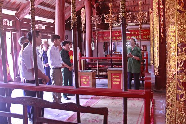 Đến thăm đình Trung Bản, Đoàn tham quan và nghe giới thiệu về pho tượng thờ Hưng Đạo Đại Vương Trần Quốc Tuấn được đánh giá là pho tượng về Trần Hưng Đạo đẹp nhất Việt Nam với tư thế ngồi, tay trái đặt lên đùi, tay phải đang cầm cây trâm, mái tóc phía sau dài xoã xuống ngang lưng.