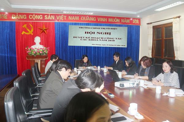 Triển khai nhiệm vụ công tác năm 2018, chiều ngày 28/02/2018, Trường Chính trị Tô Hiệu tổ chức Hội nghị duyệt kế hoạch công tác các khoa: Mác Lênin, tư tưởng Hồ Chí Minh; Nhà nước và Pháp luật; Xây dựng Đảng và khoa Dân vận. Dự Hội nghị có các đồng chí: Trần Thị Bích Hằng - Bí thư Đảng ủy, Hiệu trưởng; các đồng chí Phó Hiệu trưởng; lãnh đạo chủ chốt các khoa; trưởng các phòng chức năng nhà trường. Đồng chí Trần Thị Bích Hằng - Hiệu trưởng trường chủ trì Hội nghị.