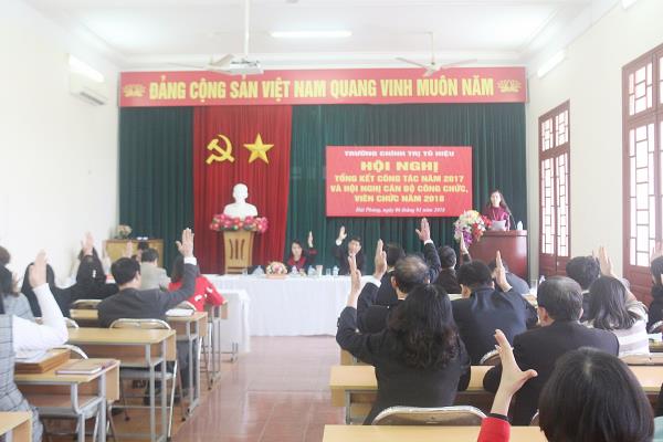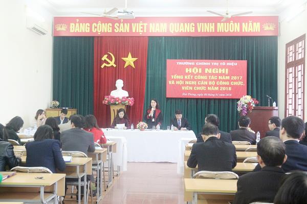 Sáng ngày 06/01/2018, Trường Chính trị Tô Hiệu đã tổ chức Hội nghị Tổng kết công tác năm 2017 và Hội nghị cán bộ, công chức, viên chức Trường năm 2018. Tới dự Hội nghị: về phía khách mời có: đồng chí Hoàng Đình Thi – Phó Tổng Biên tập Báo Hải Phòng, Khối trưởng Khối Thi đua các Ban, Cơ quan của Thành ủy năm 2017; đồng chí Bùi Thành Cương – Phó Trưởng Ban Nội chính thành ủy; về phía Trường có: đồng chí Trần Thị Bích Hằng – Bí thư Đảng ủy, Hiệu trưởng Trường và toàn thể cán bộ, viên chức, người lao động Trường.