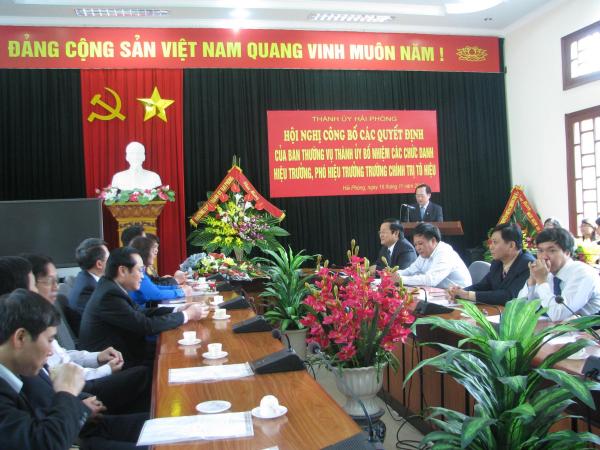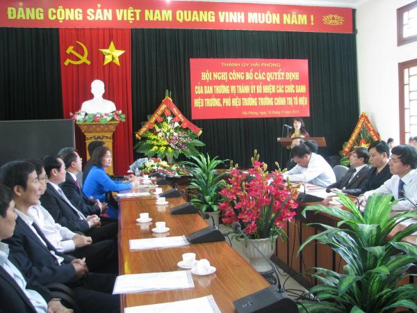 Sáng 16/11/2013, tại phòng Hội thảo Trường Chính trị Tô Hiệu, Thành ủy Hải Phòng tổ chức Hội nghị công bố các Quyết định của Ban Thường vụ Thành ủy bổ nhiệm các chức danh hiệu trưởng, phó hiệu trưởng nhà trường.