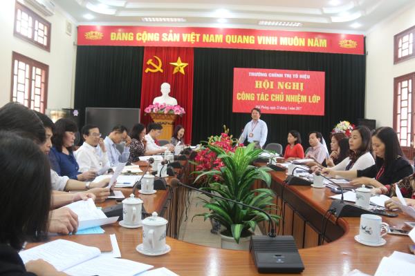 Nhằm đánh giá các mặt hoạt động của công tác chủ nhiệm lớp năm 2016 , trên cơ sở đó xây dựng và tổ chức thực hiện một số biện pháp nâng cao hiệu quả công tác chủ nhiệm lớp, góp phần nâng cao hiệu quả quản lý hoạt động đào tạo, bồi dưỡng, chiều ngày 23/3/2017, Trường Chính trị Tô Hiệu tổ chức Hội nghị công tác chủ nhiệm lớp tại phòng Hội thảo. Dự Hội nghị có các đồng chí: Hiệu trưởng, các Phó Hiệu trưởng; Trưởng, Phó các khoa, phòng; các đồng chí giảng viên và chuyên viên đang làm công tác chủ nhiệm lớp. Đồng chí Nguyễn Văn Kính - Phó Bí thư Đảng ủy, Phó Hiệu trưởng Trường chủ trì Hội nghị.