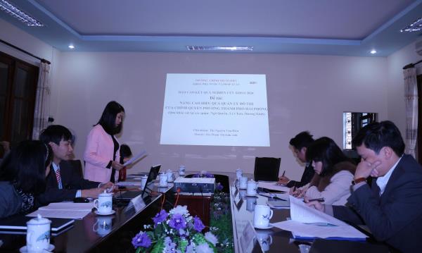 3. Đề tài “Nâng cao hiệu quả quản lý đô thị của chính quyền phường thành phố Hải Phòng qua khảo sát tại 03 quận: Dương Kinh, Lê Chân và Ngô Quyền”. Chủ nhiệm: Ths. Nguyễn Văn Hiểu - Trưởng khoa Nhà nước và Pháp luật