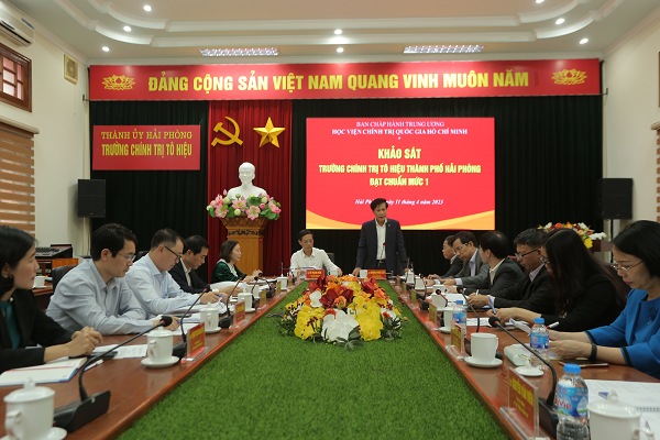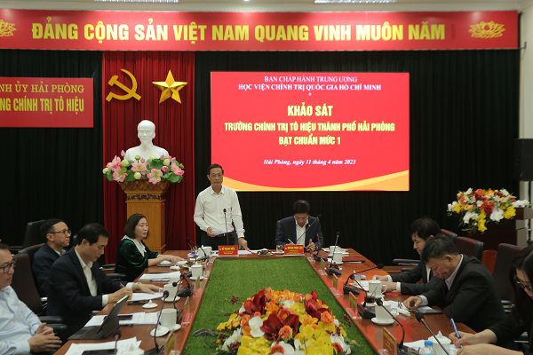 Chiều ngày 11/4, Đoàn công tác của Học viện Chính trị quốc gia Hồ Chí Minh do PGS. TS Hoàng Phúc Lâm, Phó Bí thư Đảng ủy, Phó Giám đốc Học viện Chính trị quốc gia Hồ Chí Minh làm Trưởng đoàn có buổi làm việc với Thường trực Thành ủy Hải Phòng về khảo sát Trường Chính trị Tô Hiệu đạt chuẩn mức 1.