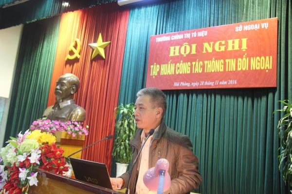 Thực hiện kế hoạch công tác năm 2016, chiều ngày 28/11/2016, Trường Chính trị Tô Hiệu phối hợp với Sở Ngoại vụ tổ chức Hội nghị tập huấn công tác thông tin đối ngoại năm 2016. Hội nghị nhằm cập nhật kiến thức, thông tin đối ngoại, cũng như nâng cao nhận thức về tình hình thế giới và quan hệ quốc tế trong bối cảnh hiện nay cho cán bộ, giảng viên, viên chức và học viên nhà trường.