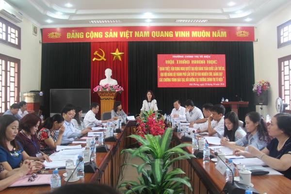 Đại diện lãnh đạo Vụ Các trường chính trị, HV CTQG HCM đ/c Cầm Thị Lai đánh giá cao công tác tổ chức Hội thảo đồng thời khẳng định những kết quả đạt được tại Hội thảo sẽ góp phần vào việc cụ thể hóa các chủ trương, đường lối quan điểm, nhiệm vụ và giải pháp về phát triển kinh tế - xã hội và các lĩnh vực của đời sống xã hội được thông qua tại Đại hội XII của Đảng. Qua đó, quán triệt, vận dụng các quan điểm chỉ đạo của Đảng vào từng lĩnh vực đào tạo, bồi dưỡng từng phần học, từng chuyên đề học tập cụ thể, nâng cao chất lượng hiệu quả của công tác chính trị tư tưởng nói chung và công tác đào tạo, bồi dưỡng cán bộ nói riêng trong tình hình hiện nay.