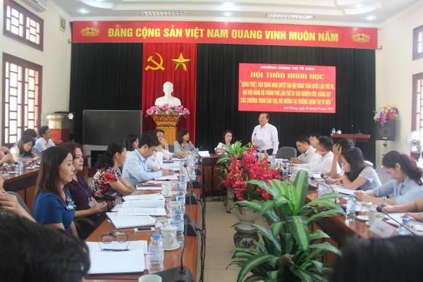 Phát biểu tại Hội thảo, đ/c Nguyễn Hữu Doãn - UV Ban Thường vụ Thành ủy, Trưởng Ban Tuyên giáo TU Hải Phòng khẳng định sự cần thiết của việc tổ chức Hội thảo. Đồng chí đề nghị các đ/c giảng viên cần đặc biệt quan tâm việc nghiên cứu, quán triệt Nghị quyết Đại hội XV của Đảng bộ Thành phố, bám sát tình hình thực tiễn địa phương trong giảng dạy và đào tạo đội ngũ cán bộ của thành phố hiện nay. Đ/c nhấn mạnh và yêu cầu tăng cường mối quan hệ phối kết hợp giữa Trường Chính trị Tô Hiệu với Ban Tuyên giáo TU trong công tác tuyên truyền, quán triệt Nghị quyết vào thực tiễn cuộc sống, thực hiện thắng lợi các nhiệm vụ kinh tế - xã hội mà Thành phố đặt ra.