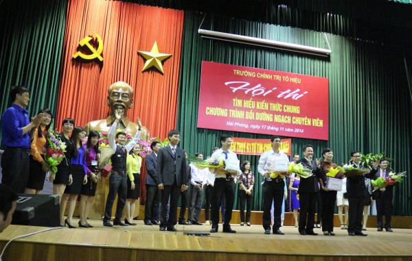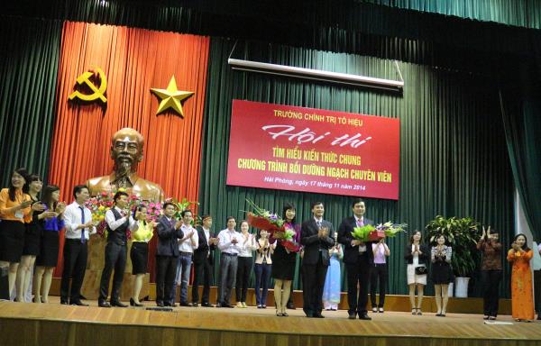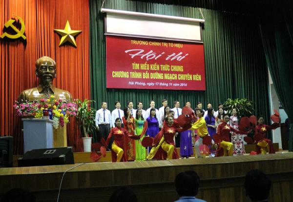 Nhằm lập thành tích chào mừng Ngày Nhà giáo Việt Nam, chiều ngày 17/11/2014, Trường Chính trị Tô Hiệu tổ chức Hội thi “Tìm hiểu kiến thức chung Chương trình bồi dưỡng ngạch chuyên viên năm 2014”. Tham gia Hội thi có 03 đội, là đại diện học viên của 03 lớp: Bồi dưỡng ngạch chuyên viên K43, Bồi dưỡng ngạch chuyên viên K44 và Bồi dưỡng ngạch chuyên viên huyện ủy Kiến Thụy K1. Đồng chí Nguyễn Văn Kính - Phó Hiệu trưởng Trường, đại diện lãnh đạo các khoa, phòng nhà trường đã tới dự.