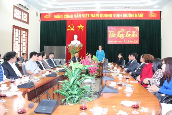 Thay mặt lãnh đạo nhà trường, đồng chí Trần Thị Bích Hằng – Phó Bí thư Đảng ủy, Hiệu trưởng Trường đã gửi thông điệp đầu xuân là những lời chúc tốt đẹp nhất đến các đồng chí lãnh đạo Thành ủy, UBND thành phố và toàn thể cán bộ, viên chức, người lao động nhà trường. Đồng chí cũng báo cáo nhanh những kết quả nổi bật mà nhà trường đạt được trong năm học 2014 vừa qua, đồng thời nhấn mạnh những nhiệm vụ trọng tâm cần triển khai trong năm mới 2015, năm đánh dấu mốc 65 năm xây dựng và phát triển của Trường.