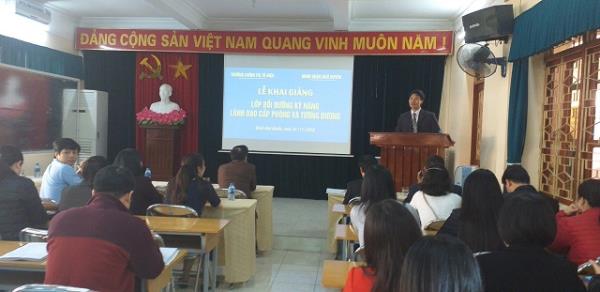 Lớp Bồi dưỡng kỹ năng lãnh đạo cấp phòng và tương đương, quận Ngô Quyền, năm 2018 gồm 75 học viên đang đảm nhiệm các chức danh lãnh đạo, quản lý và dự nguồn chức danh lãnh đạo, quản lý cấp phòng và tương đương tại các cơ quan, đơn vị quận Ngô Quyền. Lớp học được triển khai theo quy định hiện hành của Bộ Nội vụ về chương trình, tài liệu bồi dưỡng lãnh đạo, quản lý cấp phòng. Mục tiêu khóa bồi dưỡng học nhằm trang bị những kiến thức, kỹ năng cơ bản về quản lý điều hành công tác theo chức danh, vị trí việc làm của cán bộ, công chức; phát triển tư duy quản lý khoa học, nâng cao trình độ nghiệp vụ quản lý, điều hành; xây dựng thái độ, văn hóa làm việc phù hợp với người lãnh đạo cấp phòng. Đây cũng là một điều kiện quan trọng để xem xét bổ nhiệm chức vụ lãnh đạo, quản lý. Theo kế hoạch lớp học sẽ diễn ra trong 15 ngày với 12 chuyên đề học tập và một số chuyên đề báo cáo thực tế, viết bài thu hoạch cuối khóa. Đồng chí Nghiêm Thị Minh Hiền - Chuyên viên phòng Đào tạo được phân công làm quản lý lớp học.