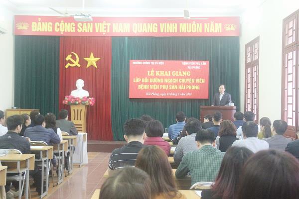 Thực hiện Kế hoạch đào tạo, bồi dưỡng cán bộ, công chức, viên chức năm 2018. Sáng ngày 03/3/2018, tại Phòng học số 3, Trường Chính trị Tô Hiệu tổ chức Lễ khai giảng Lớp Bồi dưỡng ngạch chuyên viên Bệnh viện Phụ sản Hải Phòng. Tham dự Buổi lễ có các đồng chí: Trần Thị Bích Hằng - Bí thư Đảng ủy, Hiệu trưởng; Nguyễn Văn Hiểu - Phó Hiệu trưởng Trường Chính trị Tô Hiệu; Vũ Quang Vinh - Phó Giám đốc Bệnh viện Phụ sản Hải Phòng; đại diện lãnh đạo Phòng Tổ chức cán bộ, Bệnh viện Phụ sản Hải Phòng; đại diện lãnh đạo các Khoa, Phòng nhà trường cùng toàn thể học viên Lớp học.