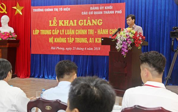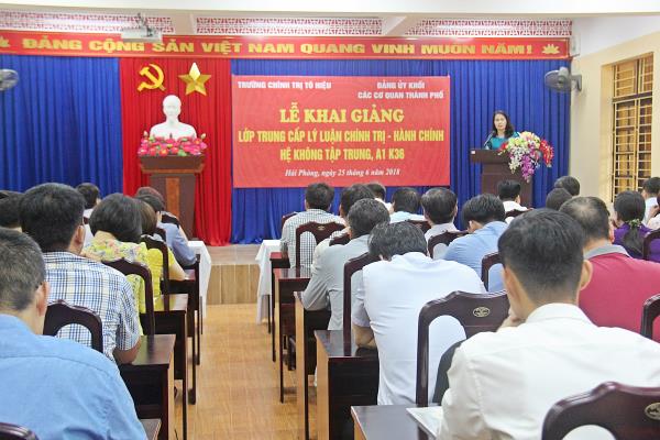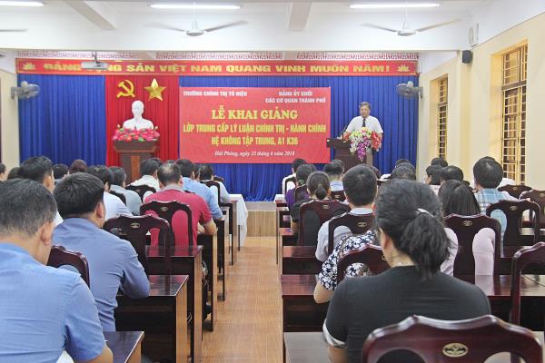 Thực hiện kế hoạch đào tạo năm 2018, sáng ngày 25/6/2018, Trường Chính trị Tô Hiệu phối hợp với Đảng ủy Khối Các cơ quan thành phố tổ chức Khai giảng LớpTrung cấp Lý luận chính trị - hành chính, hệ không tập trung, A1 K36.