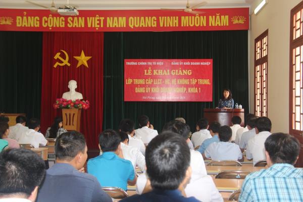 Thực hiện kế hoạch đào tạo năm 2018, sáng 11/8/2018, Trường Chính trị Tô Hiệu phối hợp với Đảng ủy Khối Doanh nghiệp thành phố tổ chức Khai giảng Lớp Trung cấp Lý luận chính trị - hành chính, hệ không tập trung, Đảng ủy Khối Doanh nghiệp, khóa 1.