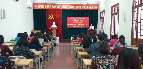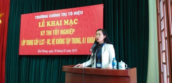 Sáng ngày 20/02/2019, tại phòng học số 3, Trường Chính trị Tô Hiệu đã tổ chức Lễ khai mạc kỳ thi tốt nghiệp lớp Trung cấp lý luận CT - HC, hệ không tập trung, A1 khóa 35 tại. Tham dự lễ khai mạc có các đồng chí: Nguyễn Thị Hải Hà - Phó Hiệu trưởng Trường Chính trị Tô Hiệu, Phó Chủ tịch Hội đồng thi, Trưởng Ban coi thi; các đồng chí trong Hội đồng thi; Ban coi thi; Ban thanh tra và học viên dự thi tốt nghiệp.