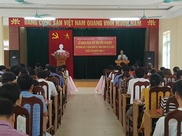 Lớp Trung cấp Lý luận chính trị- hành chính, hệ tại chức, huyện Thủy Nguyên, khóa 12 có tổng số 86 học viên, trong đó có 16 học viên đủ điều kiện viết tiểu luận tốt nghiệp cuối khóa và 70 học viên đủ điều kiện dự thi tốt nghiệp.