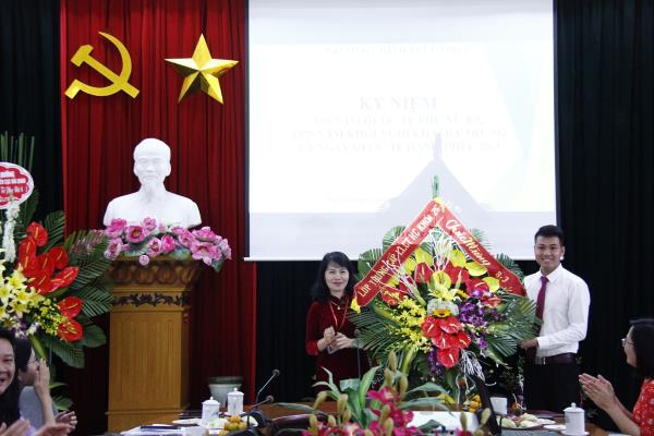 Đ/c Nguyễn Văn Kính - Phó Bí thư Đảng ủy, Phó Hiệu trưởng Trường thay mặt các đồng chí nam cán bộ, viên chức và người lao động nhà trường chúc mừng 08/03