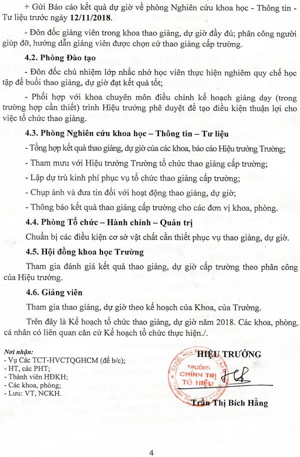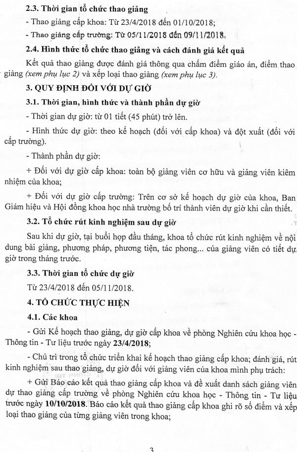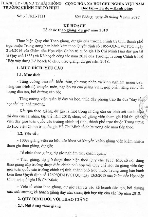 Kế hoạch tổ chức thao giảng, dự giờ năm 2018