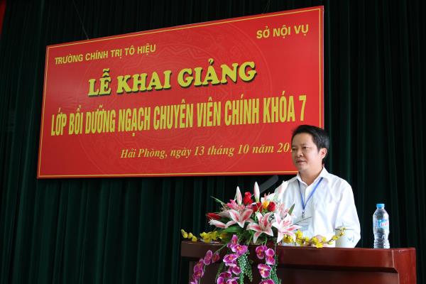 Thực hiện Kế hoạch đào tạo, bồi dưỡng cán bộ, công chức năm 2014, sáng ngày 13/10/2014, Trường Chính trị Tô Hiệu phối hợp với Sở Nội vụ Hải Phòng tổ chức khai giảng Lớp Bồi dưỡng ngạch chuyên viên chính khóa 7. Tới dự có đồng chí Nguyễn Văn Kính – Phó Hiệu trưởng nhà trường, lãnh đạo các khoa, phòng nhà trường; đại diện phòng Công chức, viên chức Sở Nội vụ cùng toàn thể 81 học viên của Lớp Bồi dưỡng.