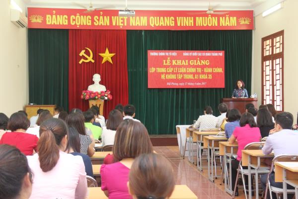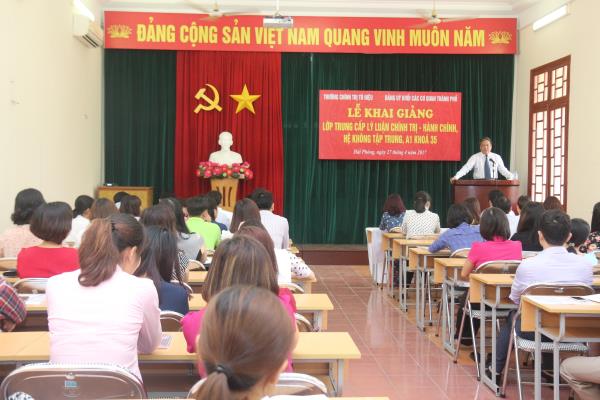 Thực hiện kế kế hoạch đào tạoTrung cấp Lý luận chính trị - hành chính năm 2017, sáng ngày 27/4/2017, Trường Chính trị Tô Hiệu phối hợp với Ban Tổ chức Thành ủy và Đảng ủy Khối các cơ quan thành phố tổ chức Khai giảng LớpTrung cấp Lý luận chính trị - hành chính hệ không tậptrung, A1 Khóa 35 năm 2017 - 2019.