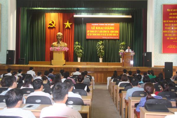 Phát biểu khai giảng lớp học, đồng chí Nguyễn Văn Kính – Phó Hiệu trưởng Trường nhiệt liệt chào mừng các đồng chí học viên đã hội đủ các điều kiện về dự lớp học. Đồng chí yêu cầu các học viên cần bố trí, sắp xếp công việc và thời gian hợp lý, đảm bảo thời gian lên lớp và thực hiện tốt các nội quy, quy chế học tập. Đồng chí cũng đề nghị giảng viên và cán bộ quản lý của nhà trường cần nâng cao trách nhiệm trong công tác giảng dạy, quản lý học viên, bám sát thực tiễn, tăng cường trao đổi, thảo luận và xử lý tình huống trên lớp đảm bảo chất lượng bài giảng và công tác quản lý lớp học. Đồng chí tin tưởng, với sự nhiệt tình của tập thể cán bộ, giảng viên nhà trường cùng tinh thần đoàn kết, nỗ lực và chủ động trong học tập, nghiên cứu của học viên, các Lớp học sẽ hoàn thành tốt mục tiêu học tập đề ra.