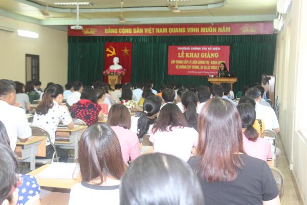 Thực hiện Kế hoạch đào tạo, bồi dưỡng năm 2017, sáng ngày 15/6, Trường Chính trị Tô Hiệu tổ chức khai giảng 02 lớp Trung cấp lý luận chính trị - hành chính hệ không tập trung A2, A3 khóa 35. Tới dự có các đồng chí: Trần Thị Bích Hằng – Bí thư Đảng ủy, Hiệu trưởng Trường; đại diện lãnh đạo phòng Chính sách cán bộ, Ban Tổ chức thành ủy; Cán bộ, giảng viên các khoa, phòng nhà trường cùng toàn thể học viên của 02 lớp.