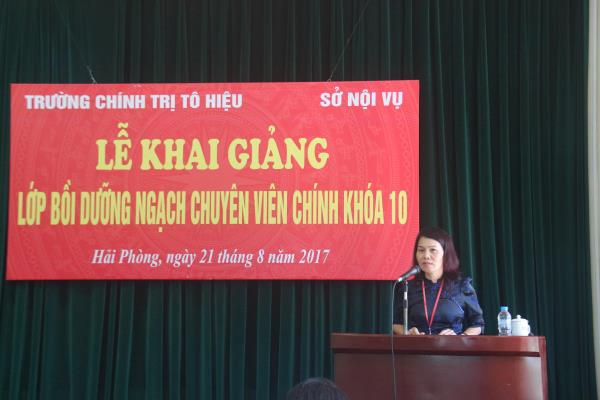 Sáng ngày 21/8, Trường Chính trị Tô Hiệu phối hợp với Sở Nội vụ thành phố Hải Phòng tổ chức khai giảng lớp Bồi dưỡng ngạch chuyên viên chính khóa 10. Tham dự Lễ khai giảng có các đồng chí: Trần Thị Bích Hằng – Bí thư Đảng ủy, Hiệu trưởng Trường; đại diện lãnh đạo phòng Công chức, Viên chức Sở Nội vụ và các khoa, phòng nhà trường.